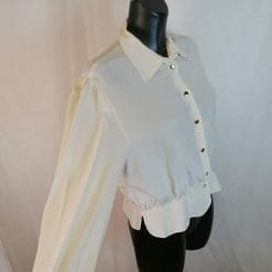 Camicetta di seta vintage color panna con bottoni metallici. Spacchetti ai lati, taglio particolare con alta fascia sul fondo.