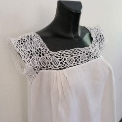 Antico lino lavorato a telaio, camicia da notte perfetta anche come vestito estivo, cucita a mano. Materiale di altissima qualità, pesante e consistente, completato da una scollatura e maniche corte in filo di cotone.