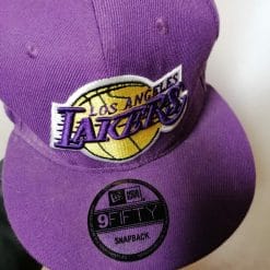 Cappellino snapback viola dei Los Angeles Lakers, 70% acrilico, 30% lana. Modello uomo / donna.