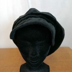 Cappelleria Agiemme, cappello newsboy in ciniglia nero vintage con visiera. Diametro circa 21 cm