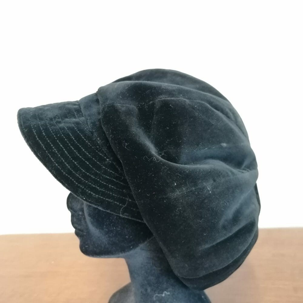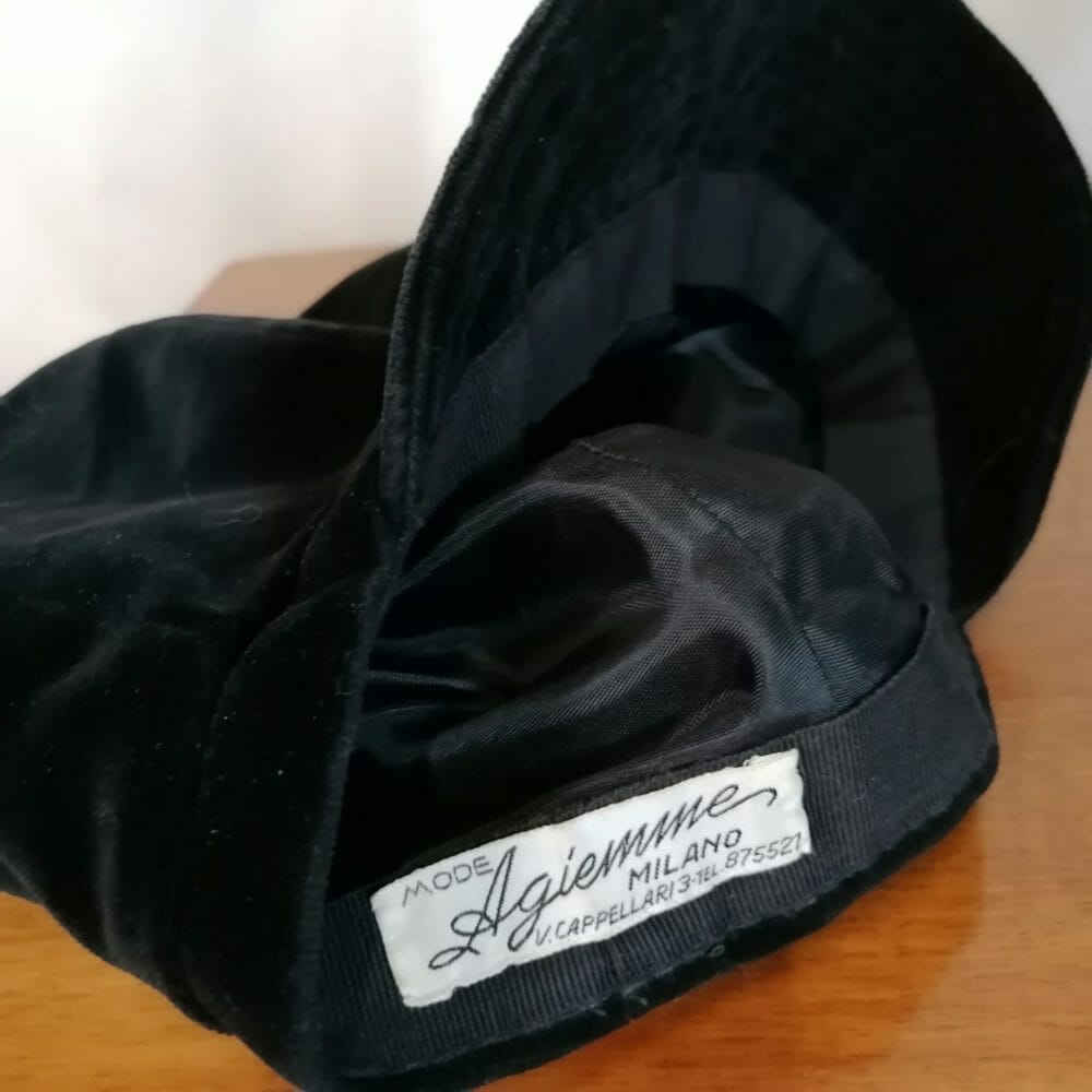 Cappelleria Agiemme, cappello newsboy in ciniglia nero vintage con visiera. Diametro circa 21 cm