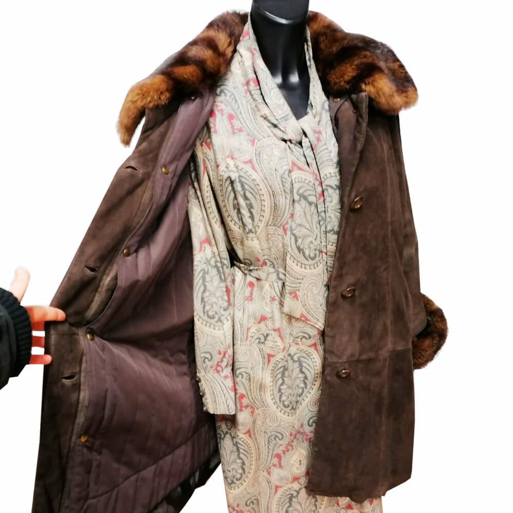 Cappotto in vera pelle scamosciata con vera pelliccia staccabile