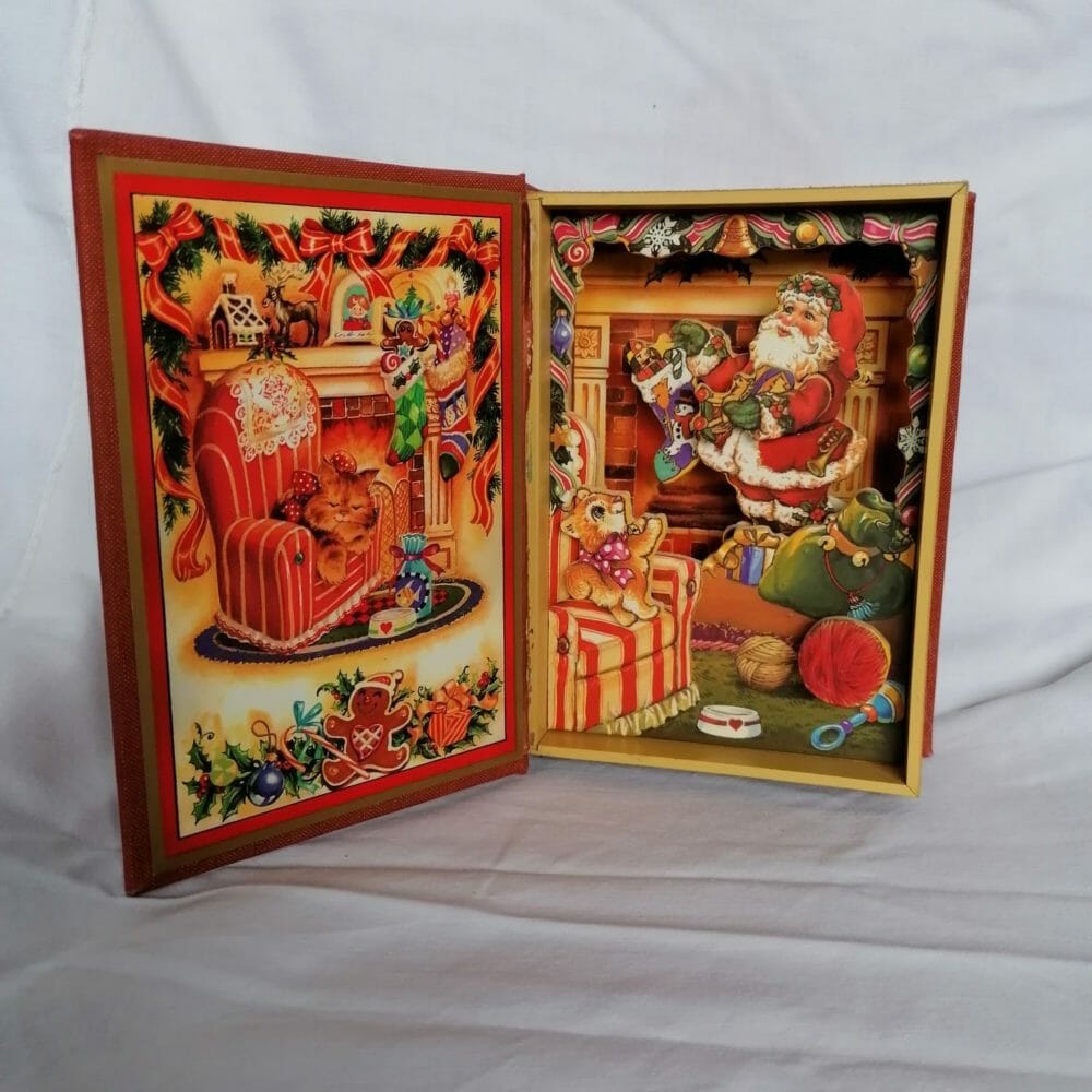 Impossibile ottenere più spirito natalizio! Questo carillon vintage a forma di libro suona e si anima dopo una breve carica a mano
