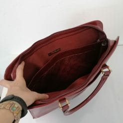 - Design: Modello cartella a mano, che unisce funzionalità e chic senza tempo, ideale per qualsiasi occasione. Colore di un’elegante tonalità di rosso scuro che aggiunge un tocco di lusso e versatilità al tuo guardaroba.