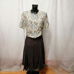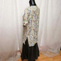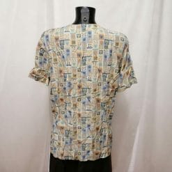 Casacca / camicia in cotone (probabilmente, non c’è l’etichetta con la composizione) con una fantasia carinissima che fa molto primi anni 2000. Ha spacchetti laterali, senza colletto, un capo informale che sta su tutto.