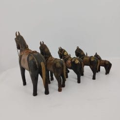 L’intero set di antichi cavalli in legno e rame Marwari India resta un esempio unico di artigianato orientale. Perfetto per collezionisti, amanti del décor etnico vintage o semplicemente chi è appassionato di cavalli.