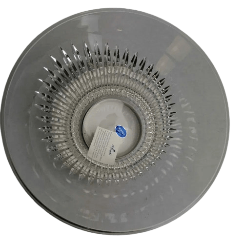 Raffinatissimo centrotavola in cristallo o ciotola svuota-tasche in vetro innestato su una base di metallo realizzato per una campagna reward di Boario acque minerali, per premiare i consumatori più fedeli. L’oggetto è in perfette condizioni, pronto per impreziosire la vostra casa con un tocco raffinato.