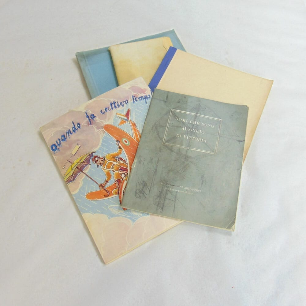 - Nomi che sono di auspicio alla vittoria, gli aeroplani Britannici, data, autore ed edizione N.P., probabile periodo di pubblicazione: anni ’50.