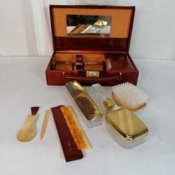 Prodotto dalla pelletteria Lito di Bologna, questo cofanetto da toilette è confezionato in pelle e include:
