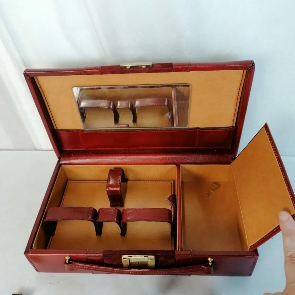 Prodotto dalla pelletteria Lito di Bologna, questo cofanetto da toilette è confezionato in pelle e include: