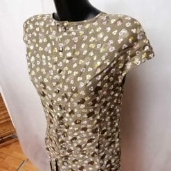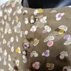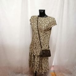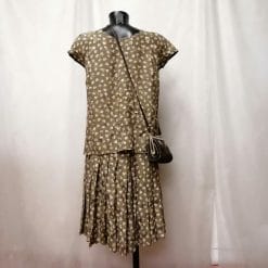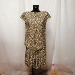 Completo in materiale effetto seta kaki con fiori.