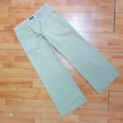 Pantaloni non foderati, stessa composizione, taschini davanti e tasche con patta dietro, passanti in vita, gamba dritta.