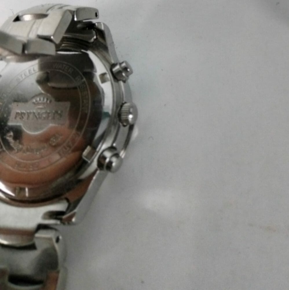 Cronografo Pryngeps al quarzo, in buone condizioni. La cassa presenta qualche segno d’usura.