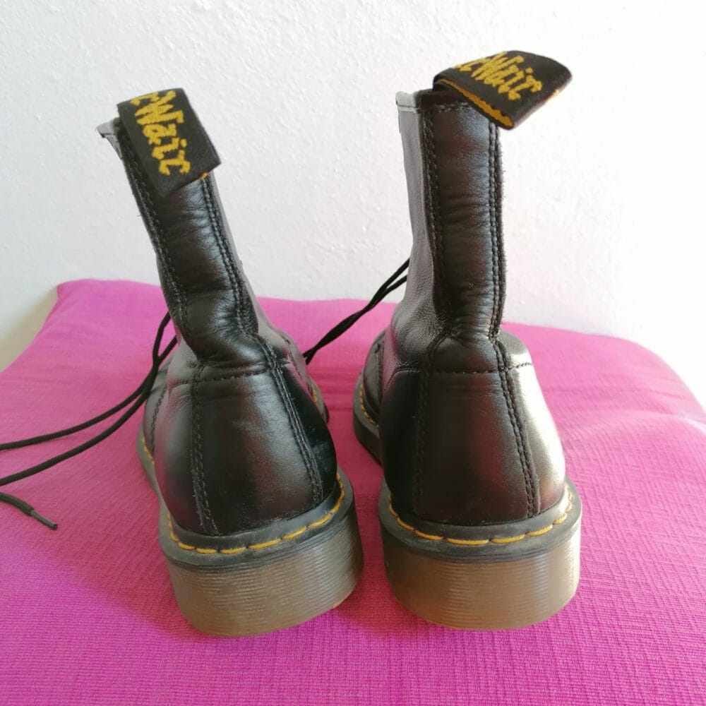 Dr. Martens Air cushion sole, modello logato Airwair con suola ammortizzata. Classico colore nero, otto occhielli, made in China.