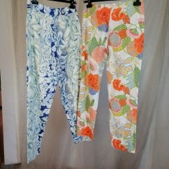 Coppia di pantaloni in cotone, perfetti per la primavera ed estate, stampa colorata.
