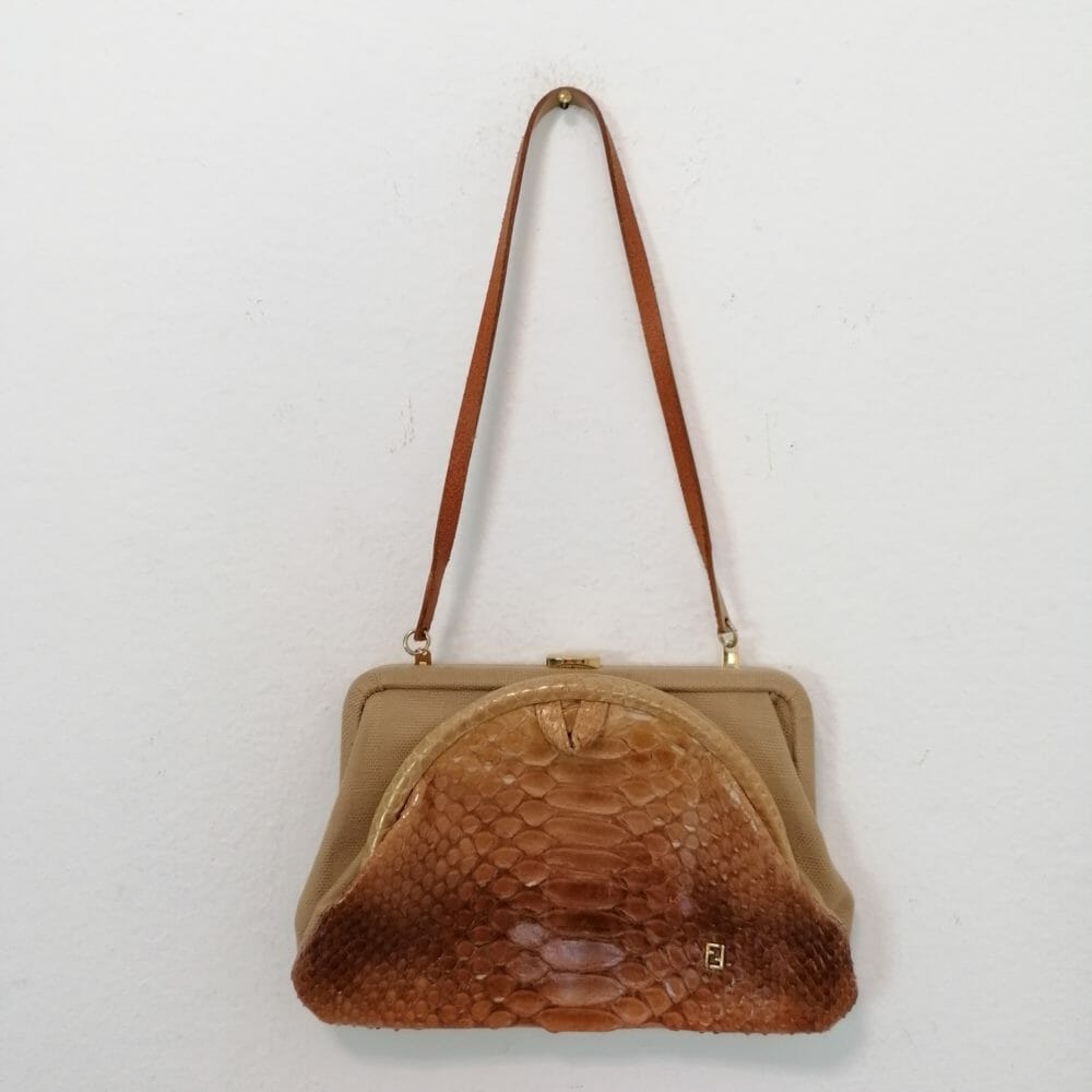 - Materiale: Tela con logo Fendi e pelle di serpente