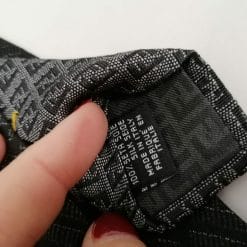 Fendi cravatta in seta con cartellino e confezione originale. Fantasia sobria scura con logo Fendi.