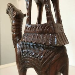 Due figurine con cammelli scolpite il legno pregiato, vintage anni 80, prodotto artistico artigianale.