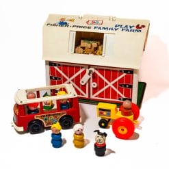 Scopri la bellezza nostalgica del Fisher Price vintage farm set! Questo splendido gioco vintage della Fisher-Price ti permette di ricreare la vita di campagna in miniatura, ideale per i piccoli e i collezionisti appassionati. Il cuore di questo set è il granaio, che sorprende con un magico muggito ogni volta che viene aperto!