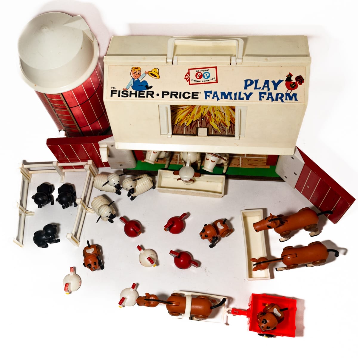Scopri la bellezza nostalgica del Fisher Price vintage farm set! Questo splendido gioco vintage della Fisher-Price ti permette di ricreare la vita di campagna in miniatura, ideale per i piccoli e i collezionisti appassionati. Il cuore di questo set è il granaio, che sorprende con un magico muggito ogni volta che viene aperto!