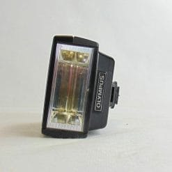 Flash Olympus OM T32, adatto a fotocamere Olympus. In ottime condizioni e testato, in buono stato di funzionamento. Funziona con 4 batterie AAA, non incluse.