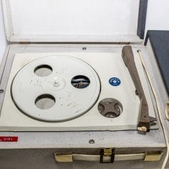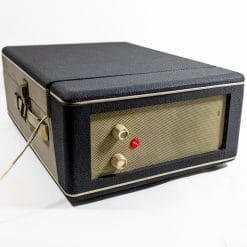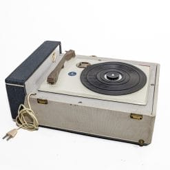 Bellissima e nostalgica fonovaligia Fonmusik vintage modello “Girl”, giradischi con altoparlante integrato per poter ascoltare i dischi 45 giri ovunque si voglia. Valigetta di colore grigio-azzurro e con manico, testata e funzionante.