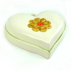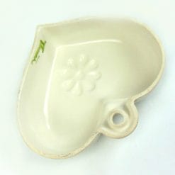 Grande Formella THUN a forma di cuore con fiore ocra e bordino verde, fuori produzione. In condizioni perfette.