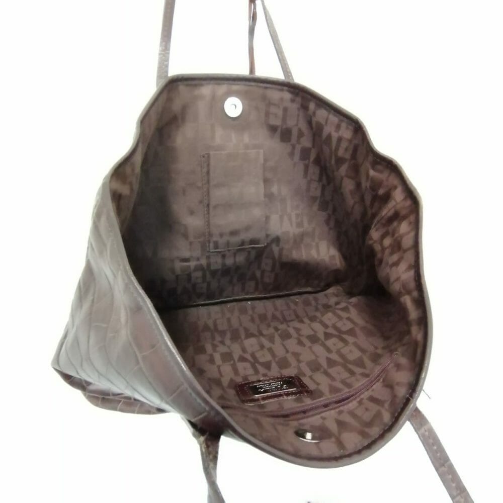 Furla, borsa a mano effetto coccodrillo, marrone. Ampia e spaziosa, l’interno è in condizioni ottime. Dettagli metallici con logo, una borsa perfetta per tutti i giorni.