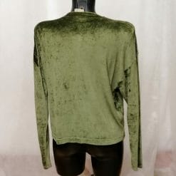 Giacca / cardigan in viscosa effetto velluto. Color verdone, trapuntato sulla parte anteriore, bottoni metallici.