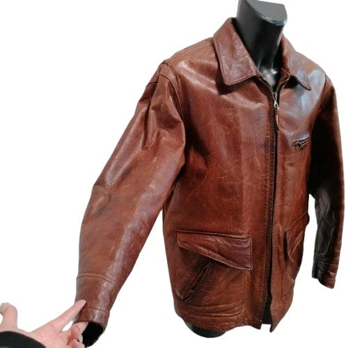 Questa giacca, realizzata con cura artigianale, ha una struttura pesante e consistente e una pelle spessa che garantisce protezione e durata nel tempo. La storia e le esperienze vissute sono testimoniate dai (minimi) segni di usura, che aggiungono autenticità e personalità.