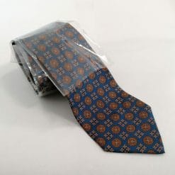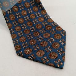 Giorgio Armani cravatta in seta vintage, ancora confezionata nella plastica trasparente. Blu con fantasia crema e marrone.