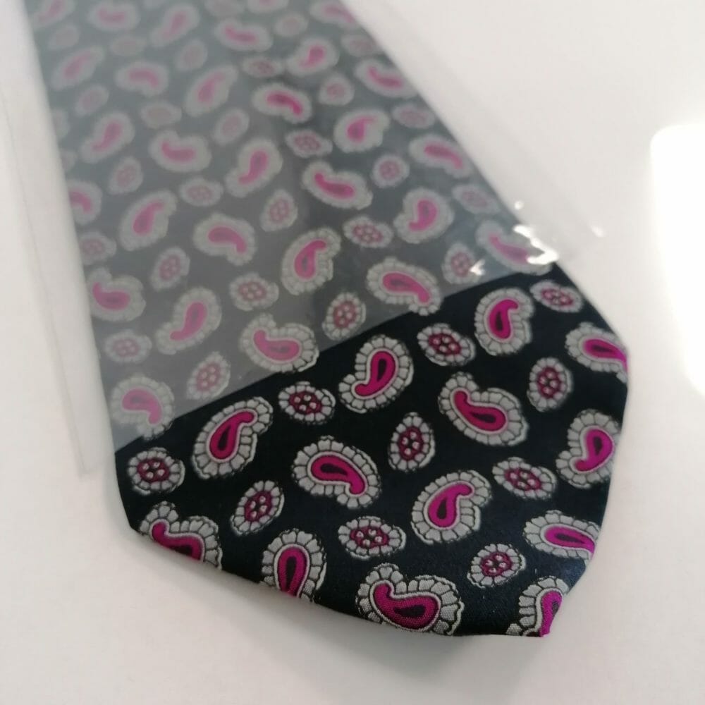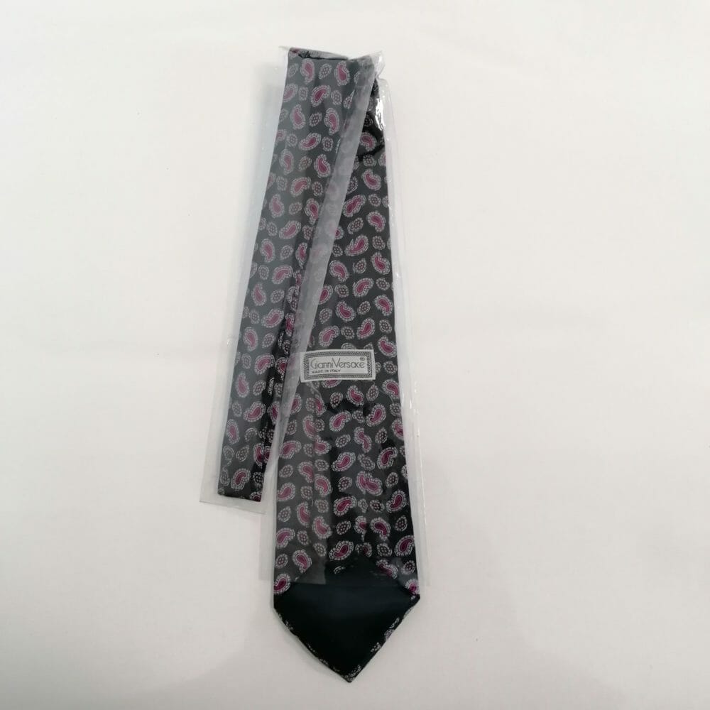 Gianni Versace cravatta in seta vintage, ancora nella sua confezione di plastica. Blu navy con fantasia fucsia.