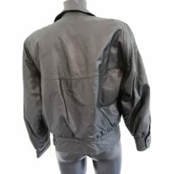 Direttamente dagli anni 80 un giubbotto di pelle con due bottoni e allacciatura incrociata, maniche molto ampie e volumi caratteristici. Belli i due grandi revers.
