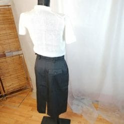 Mono-tasca posteriore, due tasche oblique con bottone, chiusura sul fianco, spacchetto. Due pinces. Bellissimo materiale e ottima fattura.