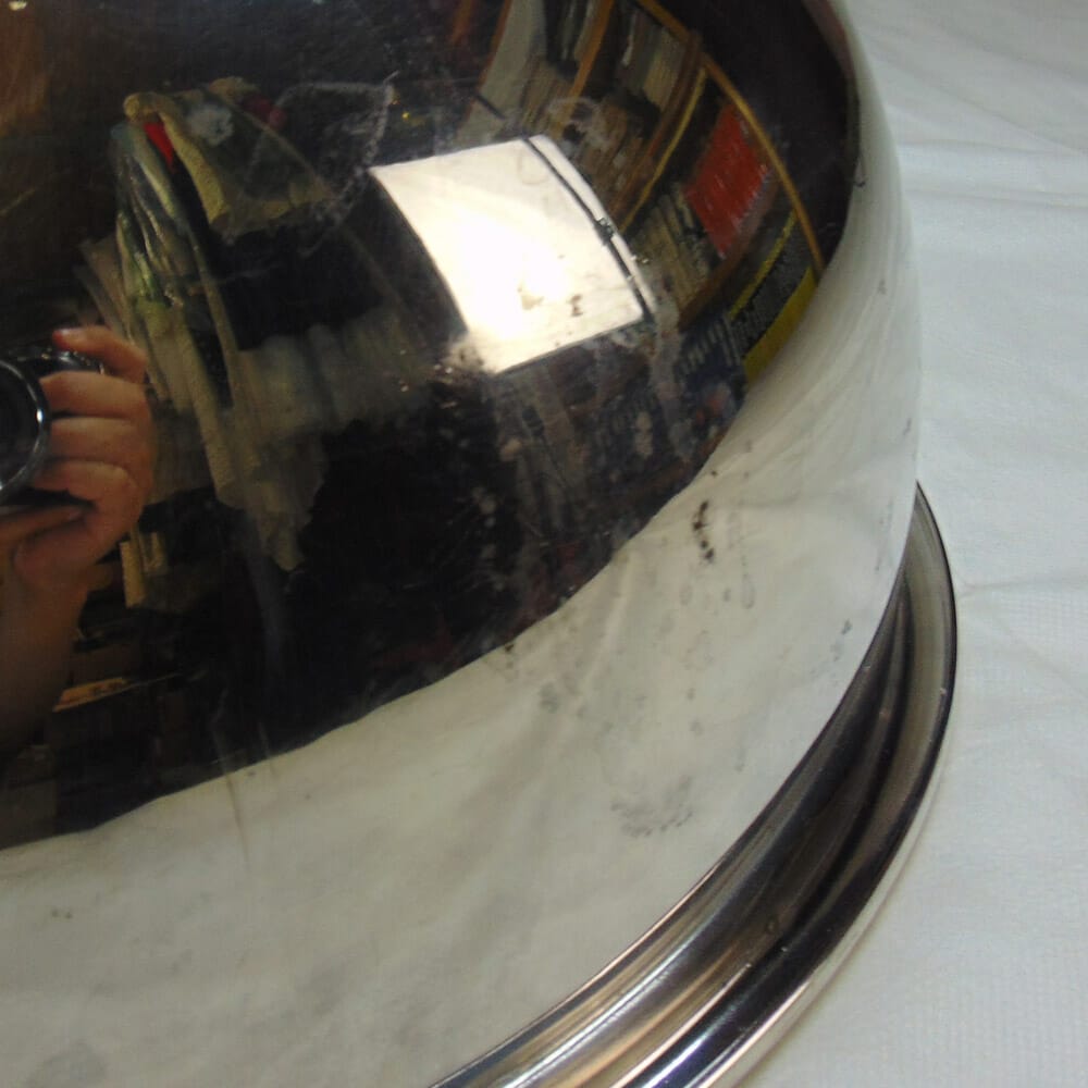 Grande e rara ciotola marchiata Sambonet, made in Italy, probabilmente degli anni ’80, in metallo argentato. Ottime condizioni, presenta qualche piccola macchia di ossidazione come da fotografia. Un oggetto che, con la sua sola presenza, riempirà la vostra casa di eleganza.