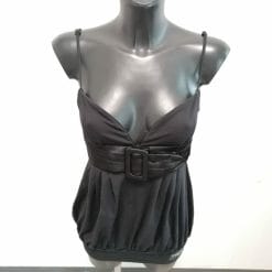 Femminilissimo top a canotta Guess con scollatura a cuore enfatizzata anche dalla finta cintura sotto al seno. Delicata la linea morbida che si chiude con la fascia elasticizzata al fondo.