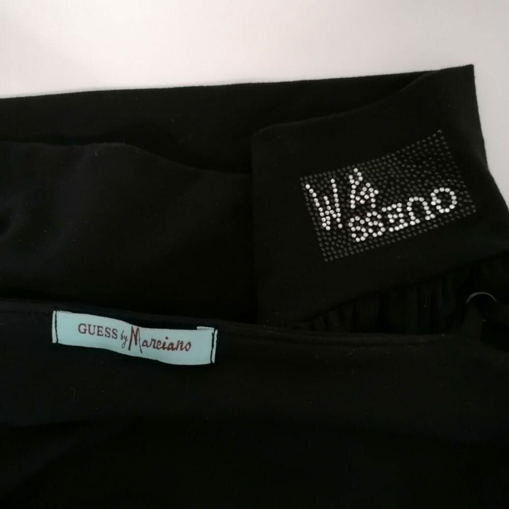 Guess by Marciano top in viscosa 90% ed elastan 10% nero. Logo riportato in brillantini effetto strass. Fibbia sotto il seno, spalline regolabili