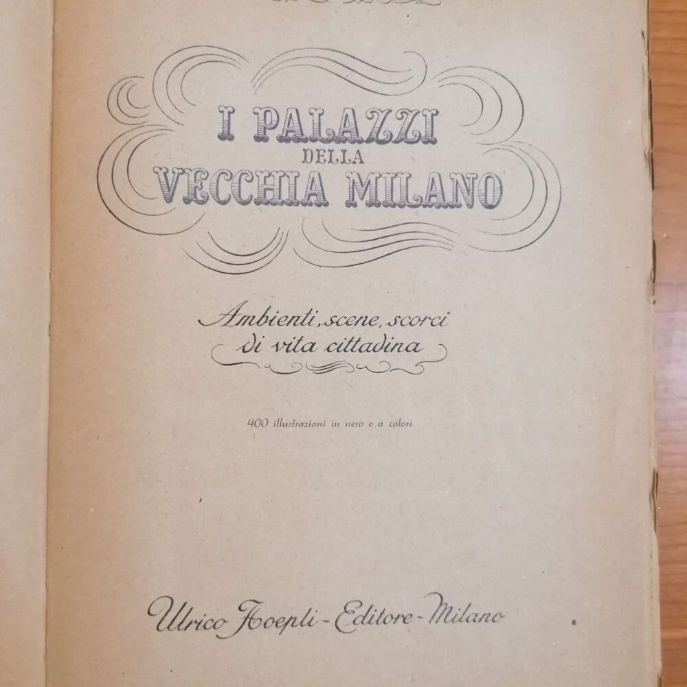 Libro I Palazzi della vecchia Milano: ambienti, scene, scorci di vita cittadina. Con 400 illustrazioni in nero e a colori. Ulrico Hoepli Editore Prima Edizione 1945. Titoli al dorso e al piatto.