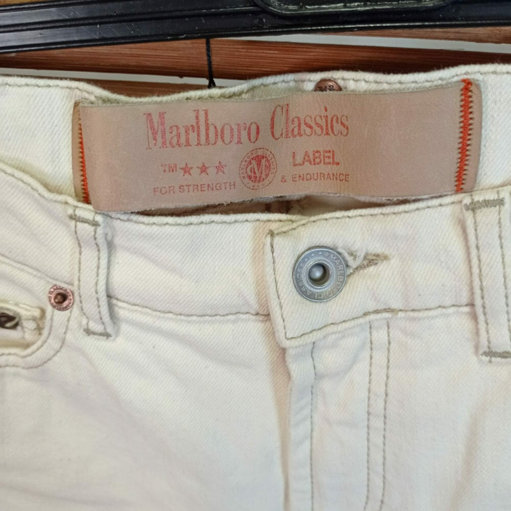 Jeans leggermente elasticizzato Marlboro classics vintage color panna con risvolto.