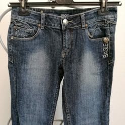 Jeans originali Basile, modello particolare con borchiette e taglio molto femminile. Cotone 98%,elastam 2%. Gamba dritta.