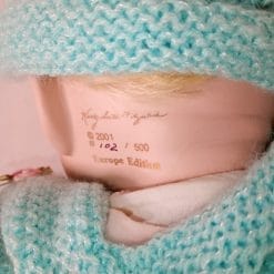 Bellissima bambola di porcellana da collezione firmata Kathy Smith Fitzpatrick bambolotto, edizione limitata del 2001, parte di una serie numerata. Il bambolotto ha corpo morbido e dettagli in porcellana finemente dipinta: viso, mani e piedi in condizioni perfette. Capelli biondi ben curati, senza nodi o segni di usura. I vestiti non sono originali, ma la qualità complessiva è eccellente.