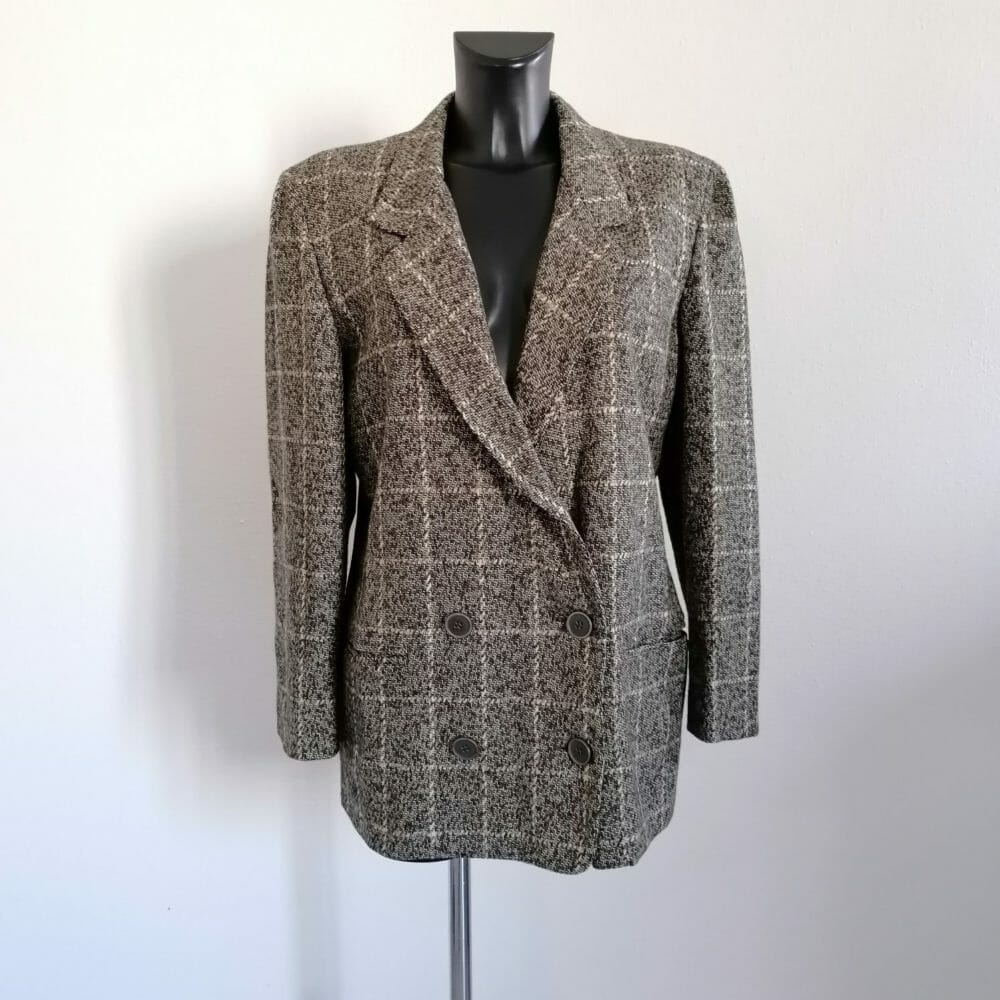 Krizia, blazer vintage in lana. Morbidissimo, taglio oversize doppiopetto. Assolutamente di moda, in linea con i trend nei negozi in questi giorni.