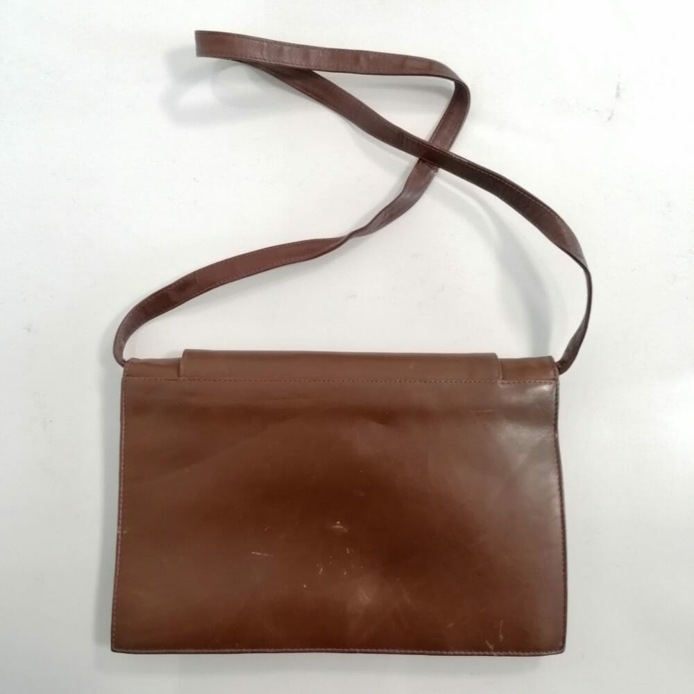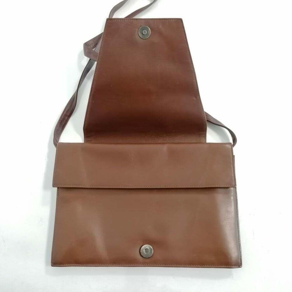 Krizia borsa a tracolla vintage in pelle marrone. La kappa stilizzata e le linee pulitissime caratterizzano questa borsetta versatile molto pratica.
