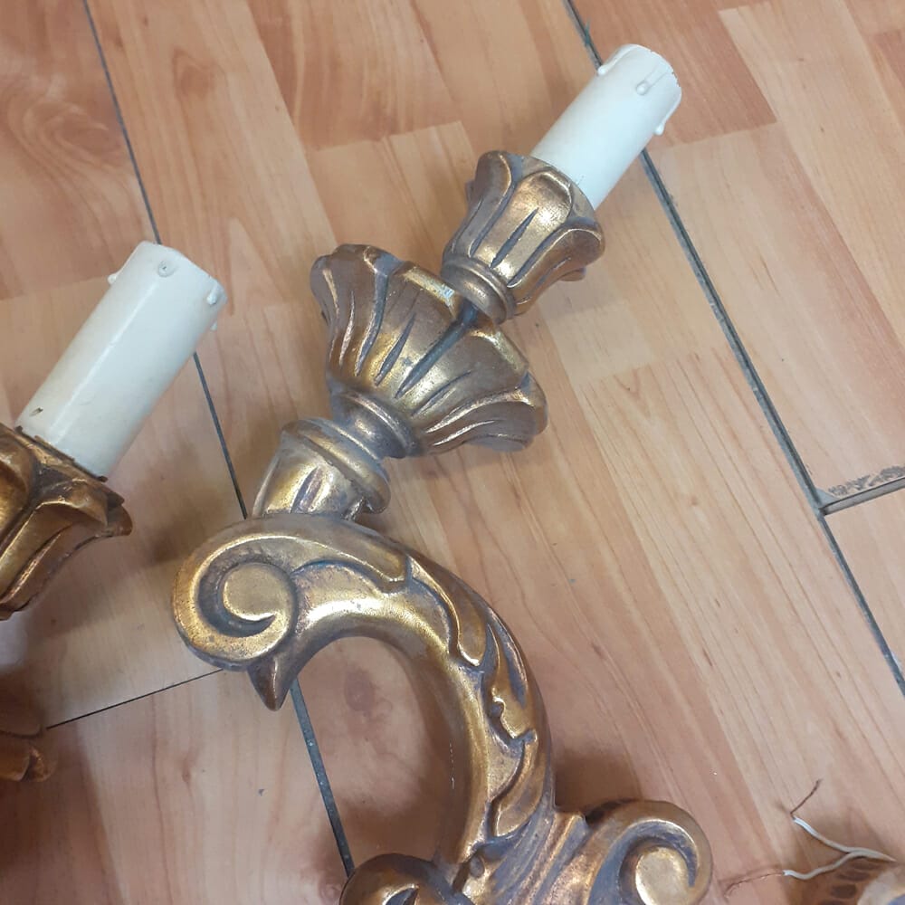 Lampadario in legno dorato anni ’50