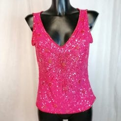 - Luisa Spagnoli top fucsia velato con applicazione di paillettes e perline, in poliammide ed elastan, molto elasticizzato.