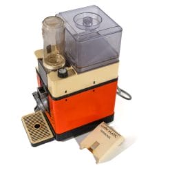 Porta un tocco di nostalgia e stile nella tua cucina con la macchina da caffè vintage anni ’70. Questo pezzo unico, dalle tonalità beige e rosso tipiche di quel periodo, è una macchina per il caffè retrò che non solo ti permette di preparare un caffè autentico, ma anche di arredare con classe il tuo spazio. Perfetta per gli amanti del vintage e i collezionisti di oggetti d’epoca.