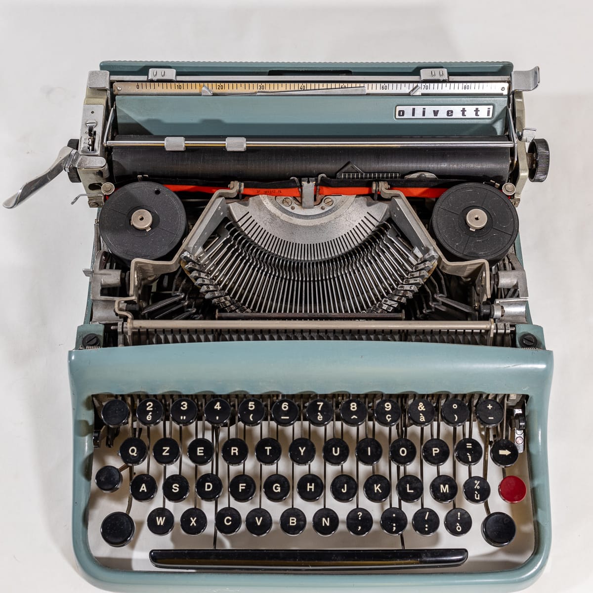 La leggendaria macchina da scrivere Lettera 22 della Olivetti, un’icona del design anni ’50, è qui disponibile nella sua classica tonalità azzurro/verde. Questa macchina da scrivere Olivetti è perfetta per gli appassionati di oggetti vintage e collezionisti, conservando tutto il fascino di un’epoca passata.