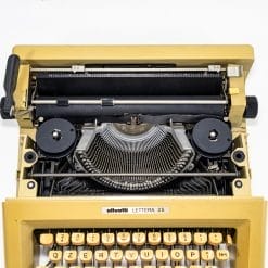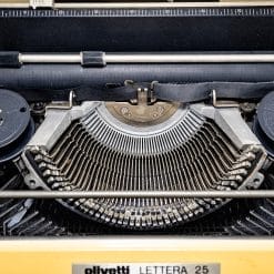 Magnifica macchina da scrivere Olivetti Lettera 25 con custodia: un’icona delle macchine da scrivere d’epoca, prodotta a partire dal 1972, che incarna la perfetta fusione tra estetica elegante e funzionalitร impeccabile, tipica del genio creativo di Olivetti.