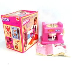Maglieria Magica di Barbie, il geniale gioco Mattel che ha appassionato le bambine degli anni ’80 nella creazione di abitini a maglia. Completa di confezione (leggermente sgualcita), e manuale.
