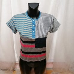 Maglietta in cotone Les Copains vintage, con risvolto alle maniche e tre bottoncini al collo. Non c’è cucitura alla spalla. Pattern originale.